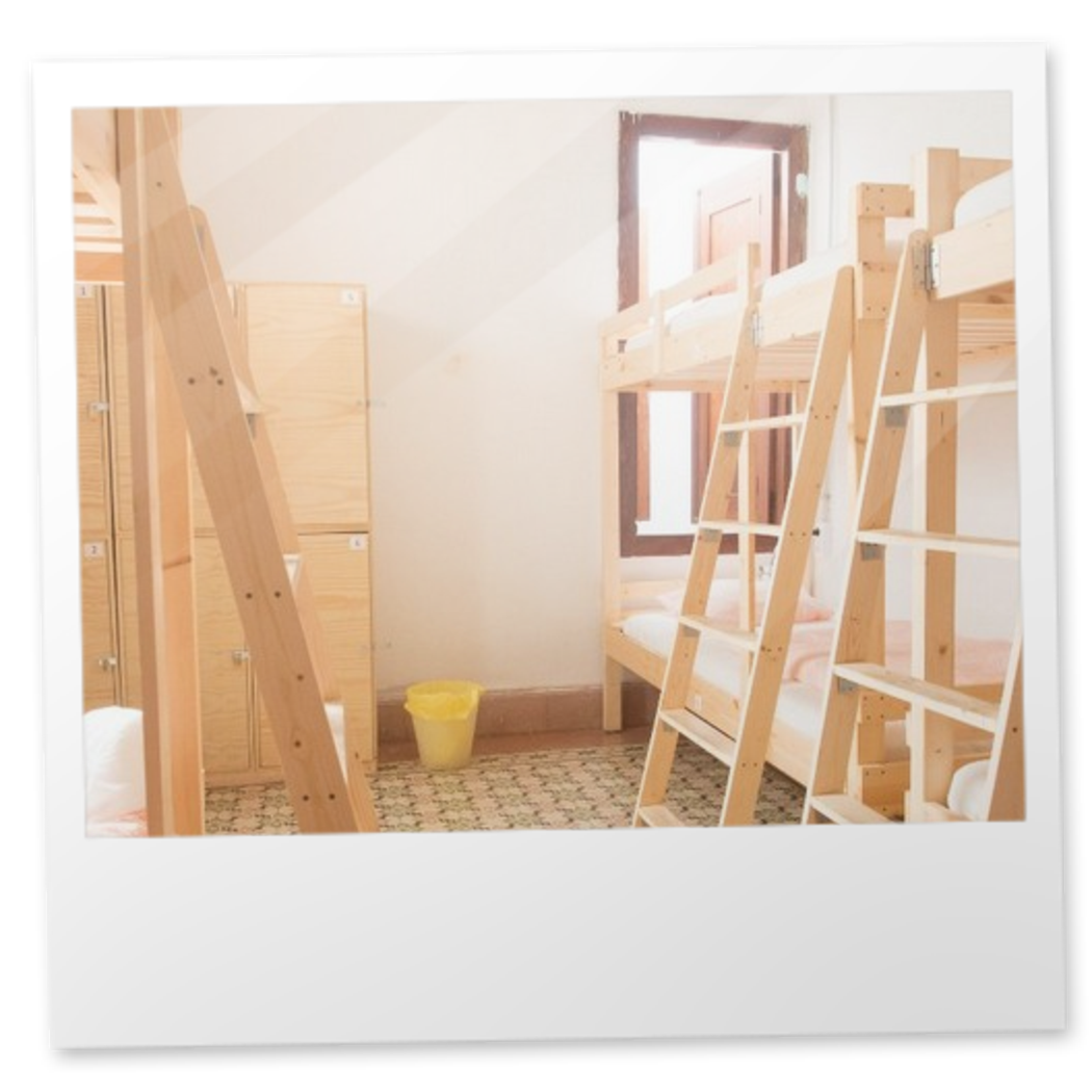 De habitaciones compartidas con taquillas personales.